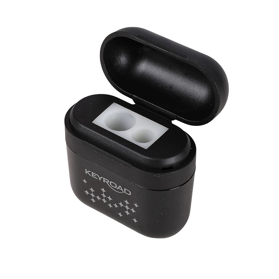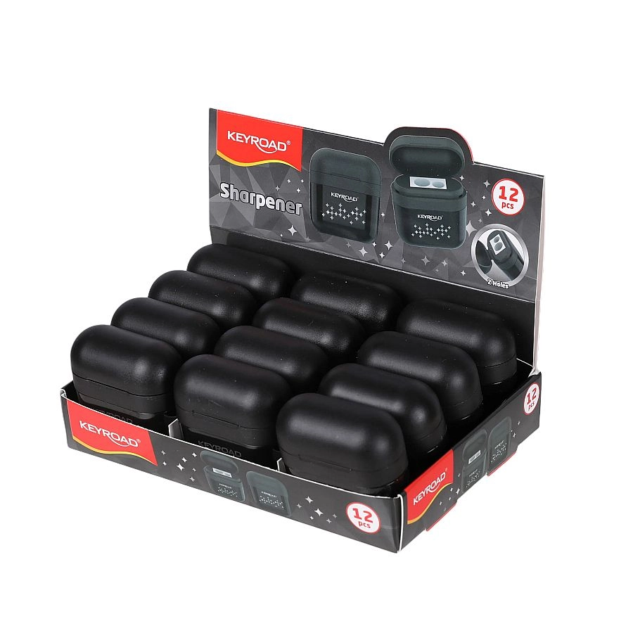 Élégant taille-crayon Keyroad AirDuo en noir offrant deux orifices de 8 mm et 11 mm pour crayons standard et jumbo. Grâce à son couvercle pratique et son réservoir à copeaux, votre espace de travail reste propre. Son format compact est idéal pour la trousse et sa forme ergonomique assure une prise en main confortable, sûre et facile.