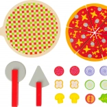 Cette pizza permet d’ajouter différentes garnitures de légumes comme des champignons, des poivrons ou du salami. Une pelle et une roulette à pizza sont incluses pour un jeu réaliste. La pizza préparée peut être fièrement présentée et servie à vos invités sur la planche en bois fournie.