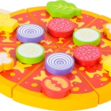 Les parts de pizza sont reliées par du velcro, permettant aux enfants de les séparer et de les rassembler facilement.