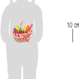 Des fruits et légumes colorés en bois massif dans un panier avec tissu à carreaux invitent à jouer à la boutique et à la cuisine.