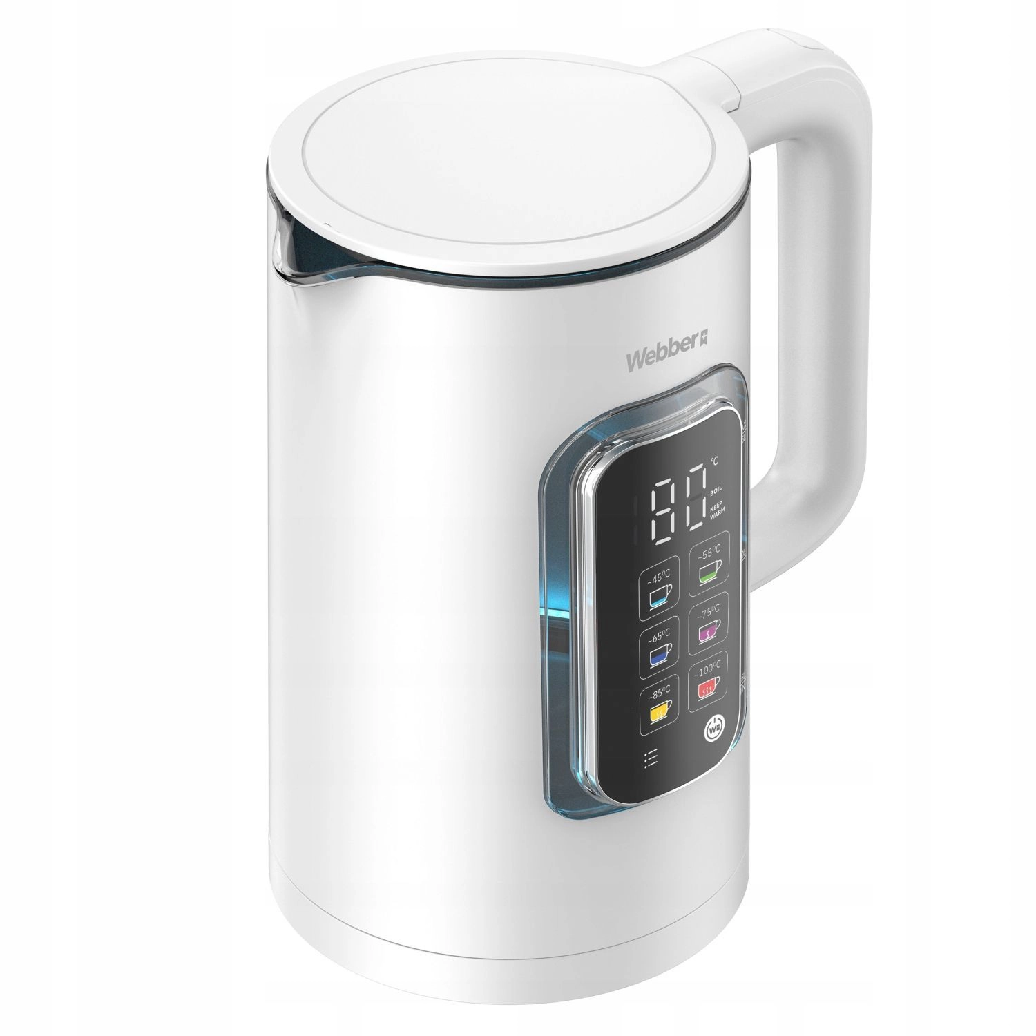 WEBBER ELIYA est une bouilloire moderne conçue pour les amateurs de thé et de café qui exigent une maîtrise maximale de la température. Choisissez facilement le chauffage idéal pour les thés délicats, le café ou les boissons pour enfants. L’intérieur en verre préserve le goût pur de l’eau et le corps élégant blanc avec écran rétroéclairé s’intègre à toute cuisine.