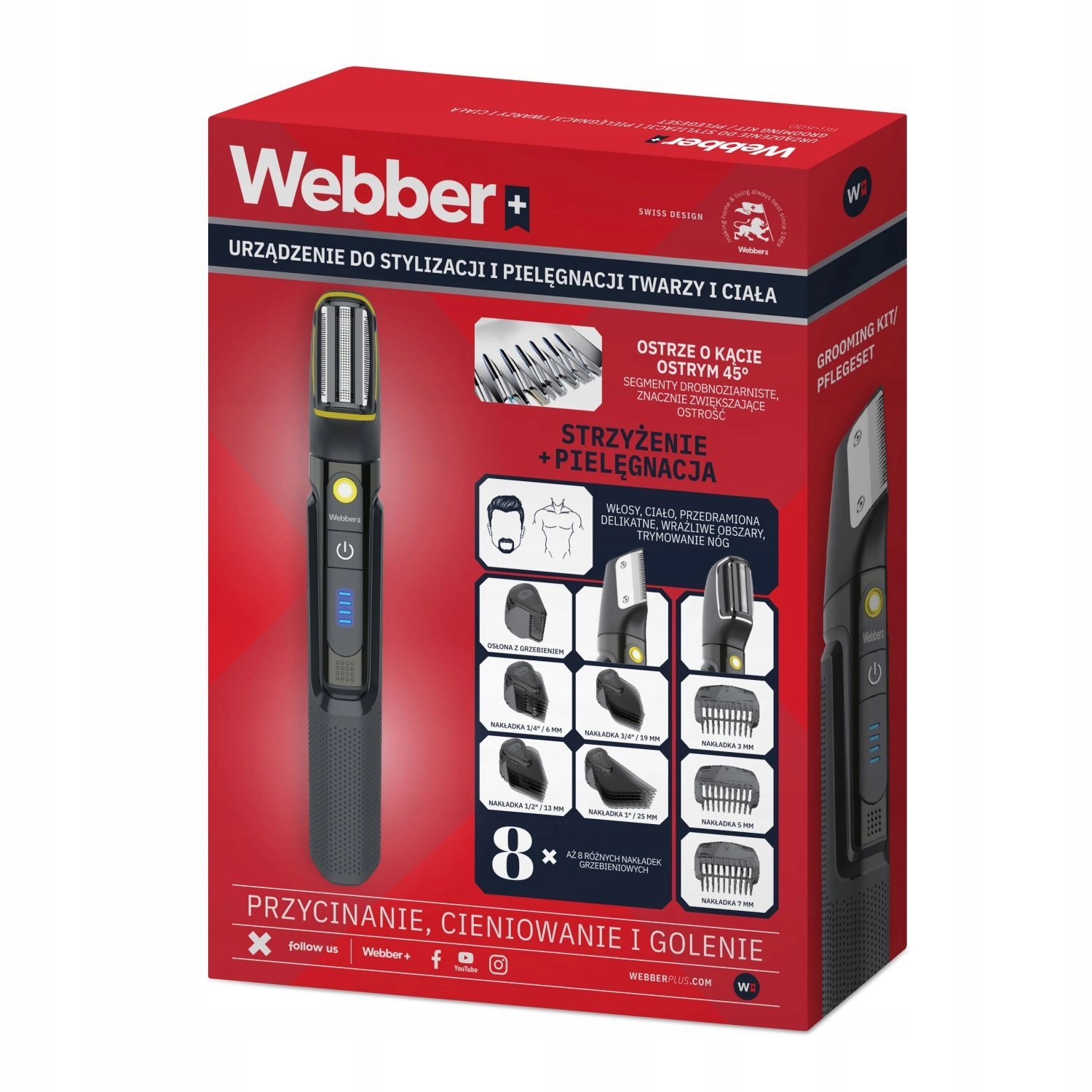 Tondeuse universelle WEBBER BG-600 pour l’entretien quotidien de la barbe, des cheveux et du corps. Elle offre un équipement 8‑en‑1, des lames en acier à 45° précises, un fonctionnement humide et à sec (IPX7), une batterie 500 mAh offrant jusqu’à 90 minutes d’autonomie, une plage de 3 à 25 mm et un écran LED clair.