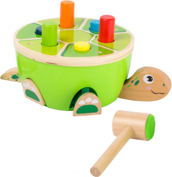 Les enfants enfoncent les chevilles colorées dans la carapace de la tortue tout en entraînant la prise, la précision et la coordination œil-main. L’effet pop-up garantit un amusement sans fin.