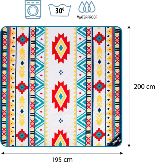 Ses dimensions de 200 × 195 cm offrent suffisamment d’espace pour s’asseoir, manger et jouer. Le motif Aztec stylé donne du caractère à votre pique-nique.