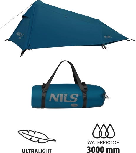 La NILS Camp Skyair 2 est une tente légère et bien pensée pour deux personnes, qui combine faible poids, durabilité et facilité d’utilisation. Grâce à ses dimensions compactes une fois rangée (63 × 16 cm), vous pouvez l’attacher sans problème à un vélo, la mettre dans un sac à dos ou un kayak. Sa construction aérodynamique à profil bas avec deux aérations assure une bonne stabilité au vent et un climat intérieur agréable.
