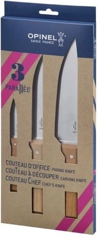 Opinel Parallèle set de couteaux de cuisine, bois de hêtre, 3 pcs