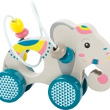 Adorable éléphant en bois sur roulettes en bois 100 % FSC qui ravira chaque tout-petit. Les perles colorées sur fil développent la motricité fine et la coordination, tandis que les roulettes permettent d’emporter le jouet partout. Un choix sûr, durable et écologique pour les premières découvertes du monde.