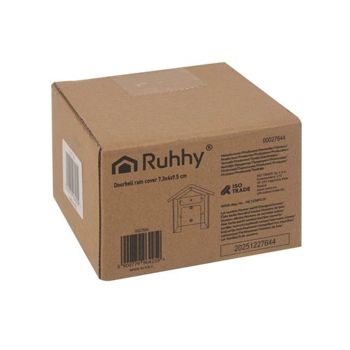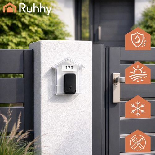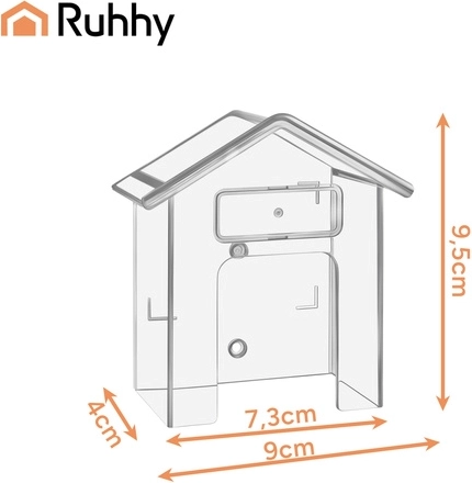 L’auvent de protection pratique RUHHY est une solution intelligente pour prolonger la durée de vie de votre sonnette. Le capot transparent en forme de maisonnette protège efficacement contre la pluie, la neige et les UV, tout en conservant une visibilité totale et un accès facile au bouton. Grâce à ses dimensions compactes 9,5 × 4,3 × 9,9 cm, il convient à la plupart des sonnettes sans fil et filaires.