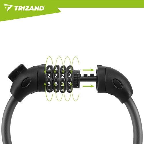 L’antivol de vélo TRIZAND est une solution pratique et polyvalente pour sécuriser vélos urbains, VTT, trottinettes ou poussettes. Le code à quatre chiffres réinitialisable offre la commodité d’un usage sans clé et un mécanisme fluide pour une manipulation rapide. Le câble en acier de 13,5 mm à enroulement flexible s’enroule facilement autour du cadre et d’un point fixe sans rayer la peinture grâce à sa gaine protectrice.