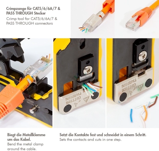 • Compatibilité : connecteurs blindés et non blindés CAT5, CAT6, CAT6A, CAT7 (pass-through), RJ11/RJ12
