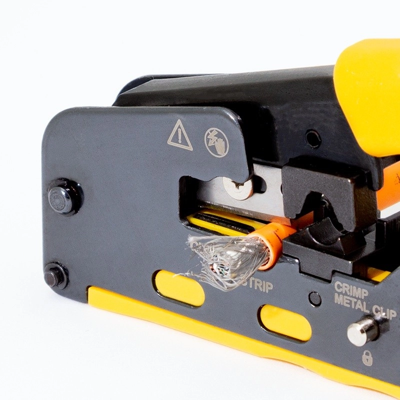 L’outil de sertissage professionnel LOGILINK pour connecteurs réseau permet un traitement rapide, précis et fiable des câbles. Il est idéal pour les connecteurs blindés CAT6A (CAT7) pass-through avec clip de sortie et totalement compatible avec CAT5, CAT6, CAT6A ainsi que les modulaires RJ11/RJ12. Il combine coupe, dénudage et sertissage dans un corps robuste et ergonomique.