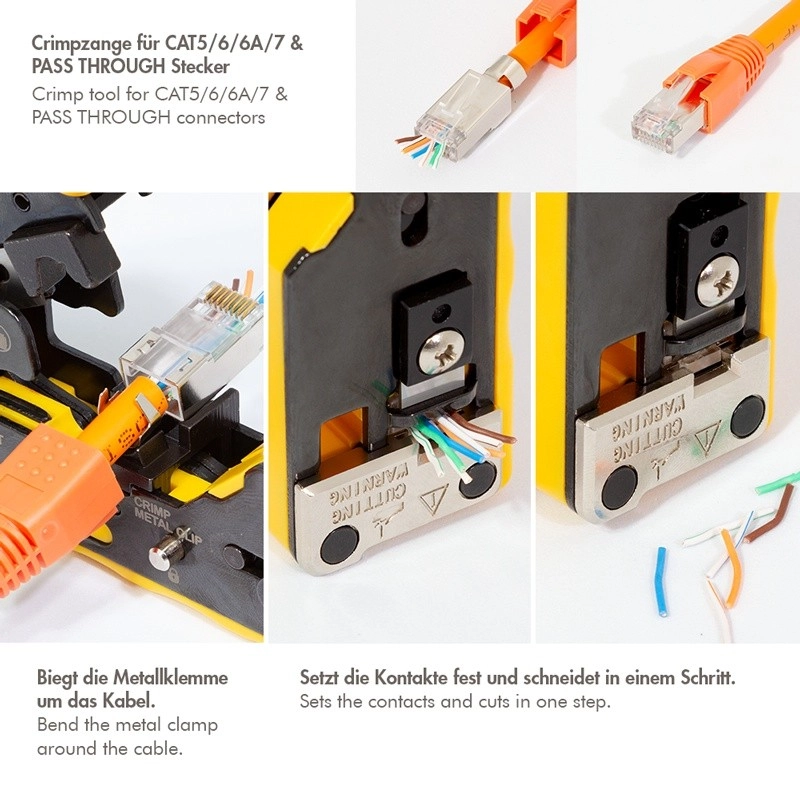 Simplifiez l’installation des réseaux de données et téléphoniques avec l’outil de sertissage universel LOGILINK. Grâce à une mécanique précise et une construction solide, vous obtenez un résultat parfait pour le câblage des connecteurs – du réseau domestique aux installations professionnelles. L’outil est optimisé pour les connecteurs pass-through CAT6A/CAT7, mais gère sans problème les CAT5/CAT6/CAT6A standard et les RJ11/RJ12.