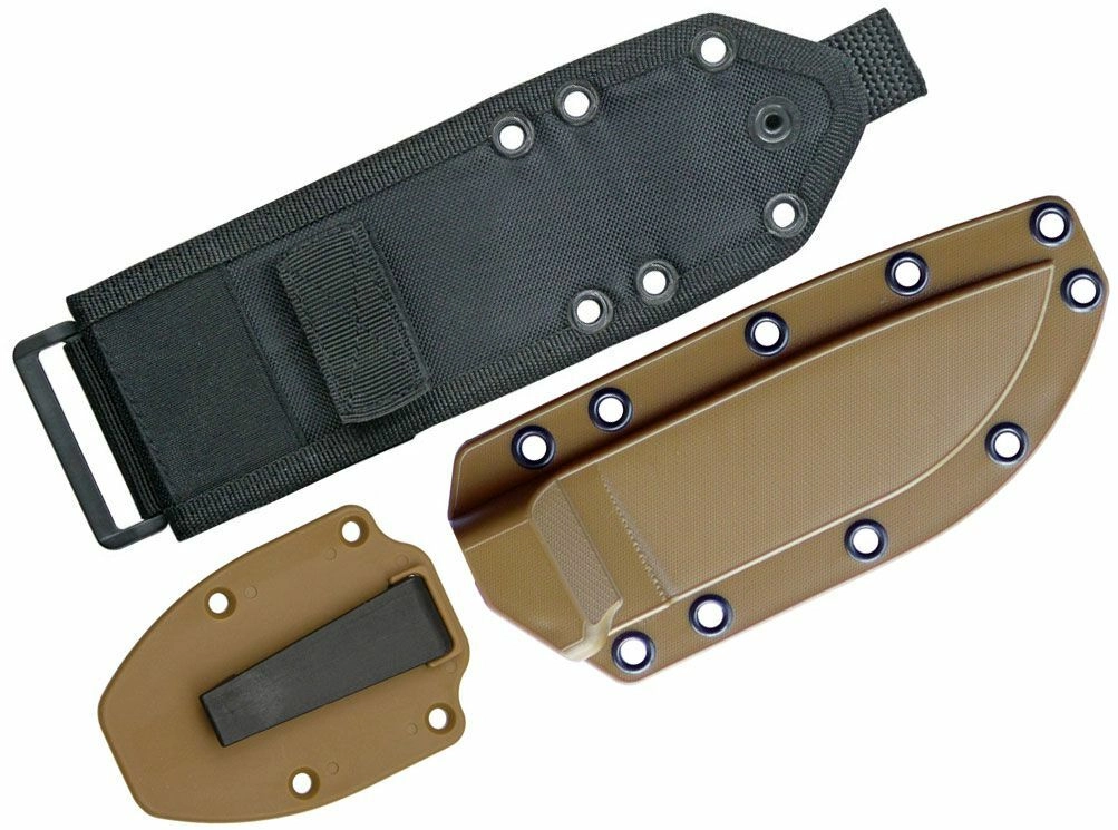 La lame en acier au carbone 1095 avec revêtement poudre noir coupe parfaitement, s’affûte facilement et supporte un usage intensif. Pour une longue durée de vie, il est recommandé d’huiler occasionnellement la surface du couteau. La poignée grise en Micarta est agréable en main, ne glisse pas et dispose d’un trou pour dragonne à l’extrémité. L’ensemble comprend un étui plastique Coyote Tan avec possibilité de fixation MOLLE, afin de fixer aisément le couteau sur votre équipement.