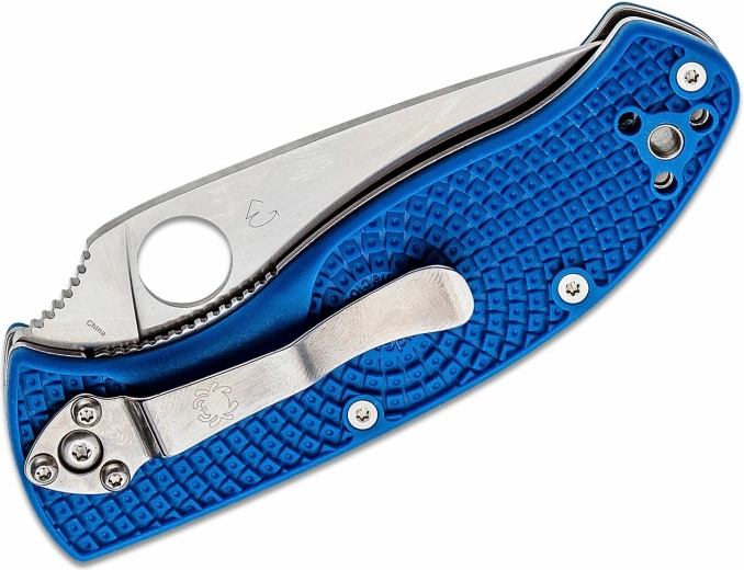 Couteau EDC léger et robuste pour une utilisation quotidienne. Il offre une lame partiellement dentelée en acier inoxydable CPM-S35VN avec une finition satinée, une ouverture facile grâce à l’orifice dans la lame et un verrouillage Backlock sûr. La poignée FRN ergonomique de couleur bleue avec clip assure une prise en main fiable et un port confortable.