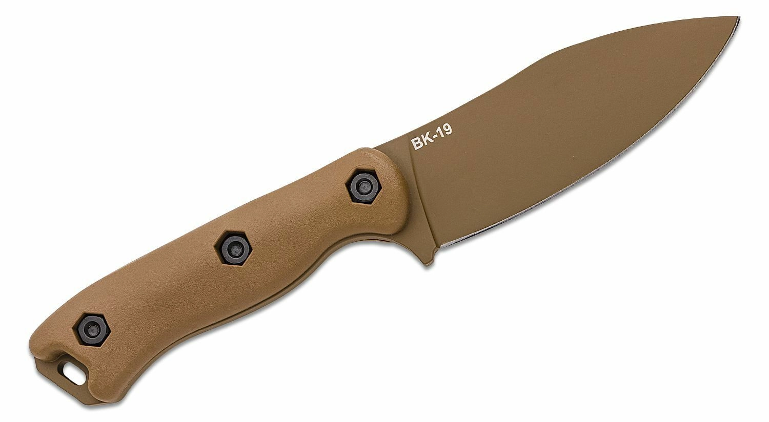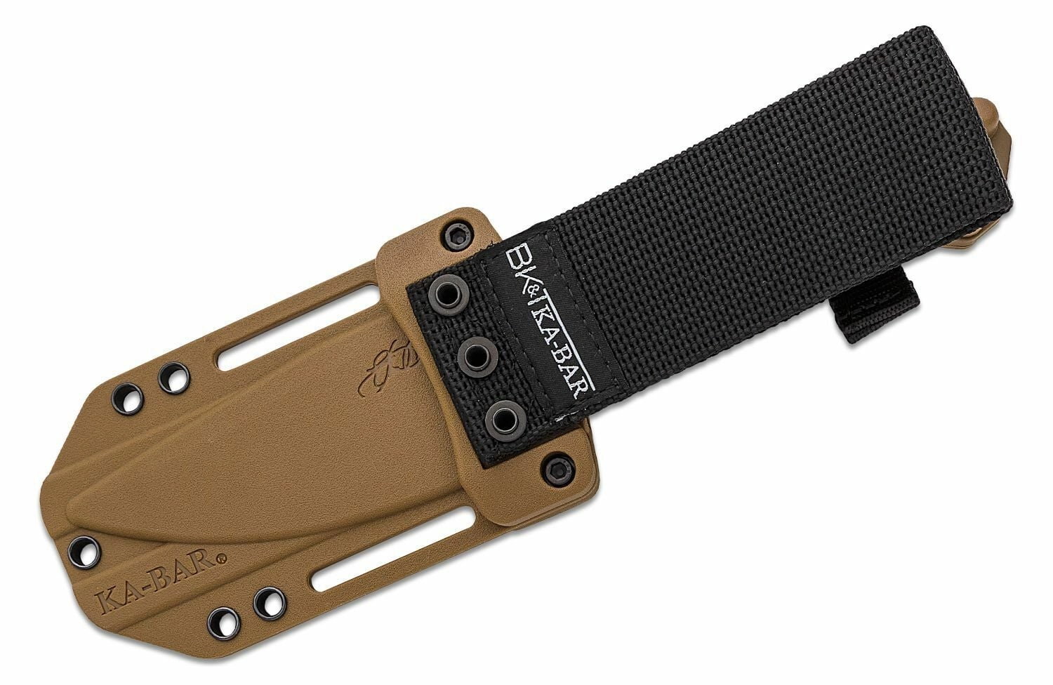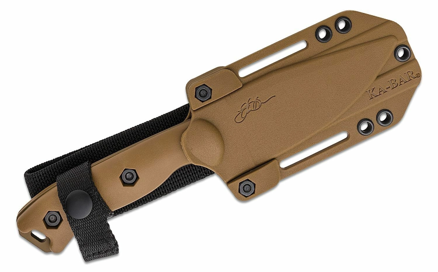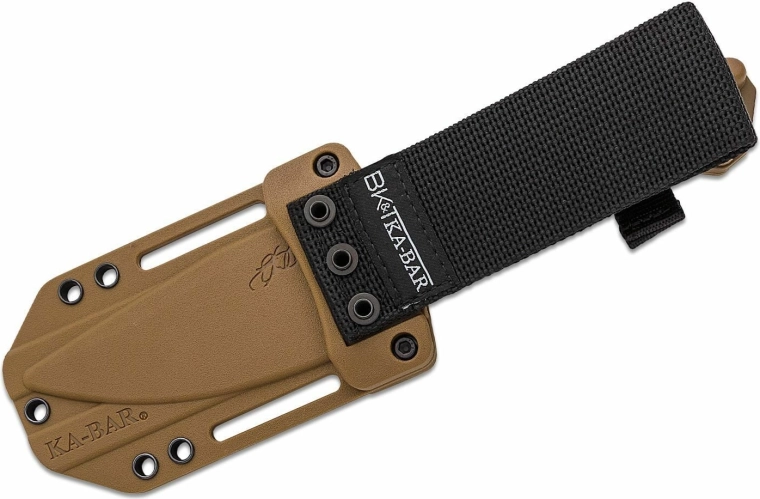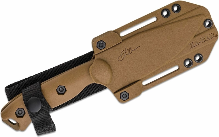 La construction full tang sur toute la longueur augmente la solidité et la longévité du couteau. Les plaquettes texturées en Zytel de teinte brun sable assurent une prise confortable et sûre, même avec des gants. Un étui polymère résistant avec multiples options de fixation est inclus pour un port sûr et flexible à la ceinture ou sur l’équipement.