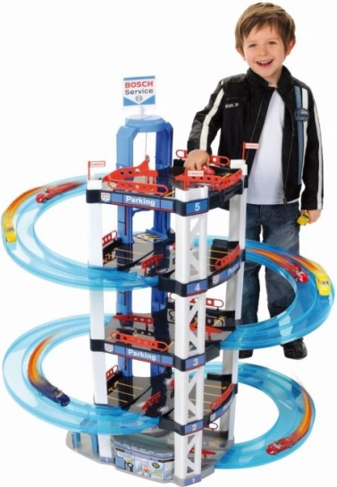 Le garage de stationnement BOSCH à cinq étages de Theo Klein offre un montage modulable en 1, 3 ou 5 niveaux, un ascenseur manuel pour petites voitures et une station de lavage au rez-de-chaussée. En plastique de qualité pour des heures de jeu et un excellent cadeau pour les fans de petites voitures.