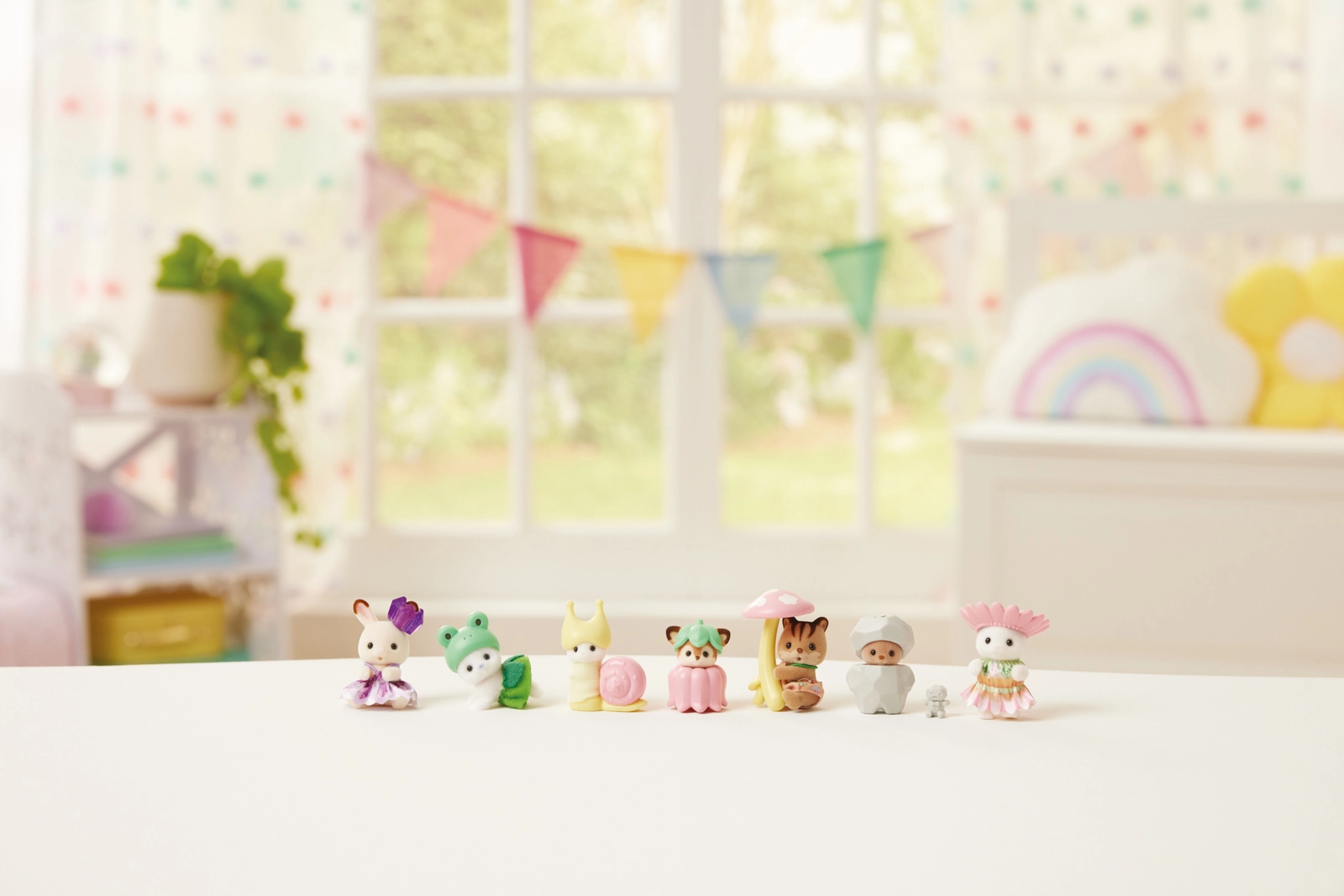 Chaque figurine porte un costume naturel unique – amanite, fleur, grenouille, escargot ou rocher. Des textures délicates, des couleurs pastel et de petits accessoires renforcent l’attrait de collection et le plaisir de jeu.
