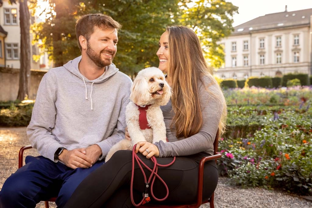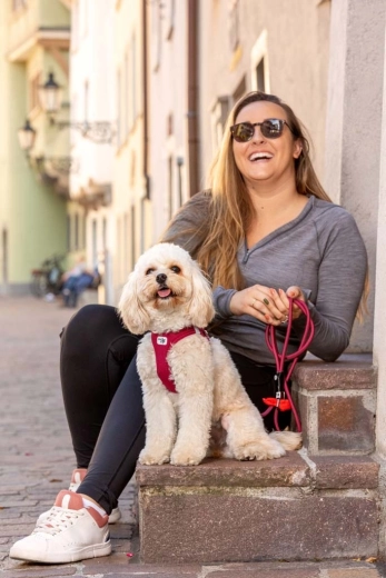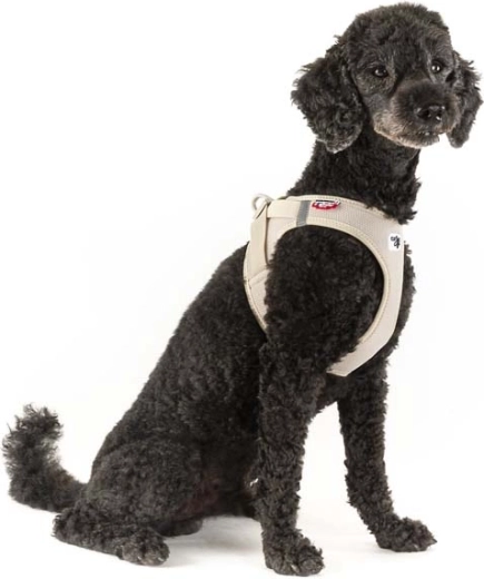 La boucle haute résistance permet d’attacher la laisse et le harnais d’une seule main et supporte une traction jusqu’à 100 kg. Les éléments réfléchissants améliorent la visibilité dans l’obscurité et le matériau Air‑Mesh, une fois mouillé à l’eau froide, apporte une agréable sensation de fraîcheur par temps chaud. Le harnais inclut en outre un DogFinder ID – enregistrement en ligne gratuit en cas de perte du chien.