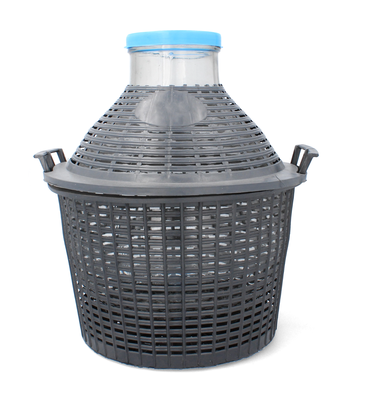 Un panier de protection en plastique avec poignées robustes est inclus pour transporter en toute sécurité le récipient vide. Lorsqu’il est plein, nous recommandons de transporter la dame-jeanne en la tenant par le fond. Pour une hygiène parfaite, lavez et désinfectez soigneusement le récipient avant chaque utilisation (par ex. avec du métabisulfite de potassium).
