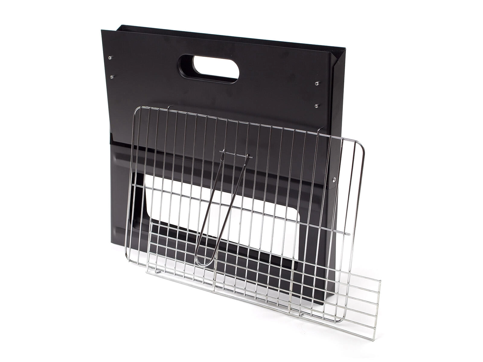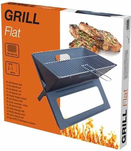 Ce barbecue plat pliant allie praticité et durabilité. Le corps en acier robuste et la grille chromée offrent une surface stable pour préparer viandes, légumes et fromages, tandis que le pliage rapide et le profil fin permettent un transport et un rangement aisés.