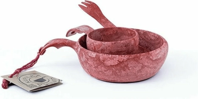 Set outdoor pratique pour enfants et adultes pour les sorties et la randonnée – bol, gobelet et spork en matériau Kareline®. Léger, solide, incassable et facile à nettoyer, résiste à des températures de -30 °C à +110 °C et n’absorbe pas les odeurs.