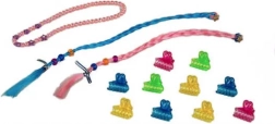 L’emballage comprend une variété d’accessoires capillaires colorés qui apportent un style unique aux coiffures.