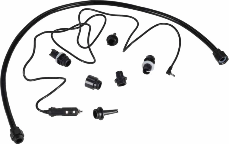 6× embout interchangeable, 1× câble d’alimentation 12 V DC, 1× tuyau avec raccords A et B