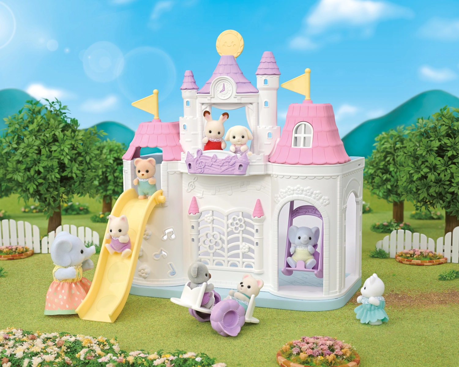 La ravissante maternelle de château de SYLVANIAN FAMILIES offre aux enfants un vaste espace pour un jeu créatif – avec toboggan, balançoire et bascule, qui peut être transformée en table et chaises. Inclus, une figurine bébé assise Flora le lapin et une petite chambre avec fonction de changement de météo (ensoleillé/pluvieux), permettant aux enfants de jouer dedans comme dehors. La finition soignée, les membres articulés et les vêtements interchangeables stimulent l’imagination et le jeu de rôle.