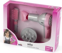 Nous vous présentons le sèche-cheveux pour enfants Braun avec diffuseur et brosse idéal pour les petites coiffeuses. Ce produit est fabriqué sous licence de la société Braun, ce qui lui confère un aspect réaliste, semblable à un véritable appareil. Le produit est totalement sûr, le sèche-cheveux souffle uniquement de l'air sans chauffer, garantissant ainsi la sécurité des mains des enfants.