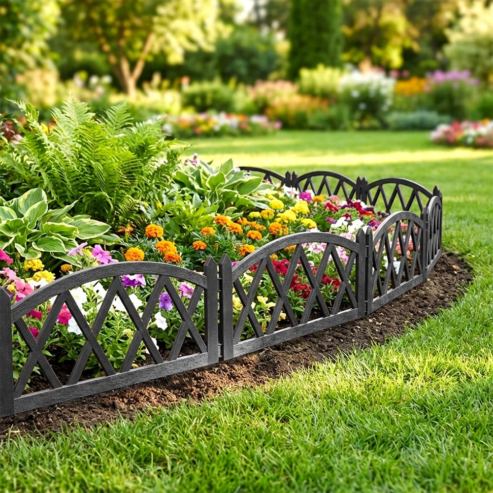 Créez une séparation claire et esthétique entre la pelouse et les parterres fleuris. Le lot de 4 bordures grises se pose facilement grâce aux deux piquets intégrés sur chaque panneau et assure une fixation stable dans le sol. Alignés en ligne droite, vous obtenez une longueur totale d’environ 228 cm, idéale pour border massifs et sentiers.