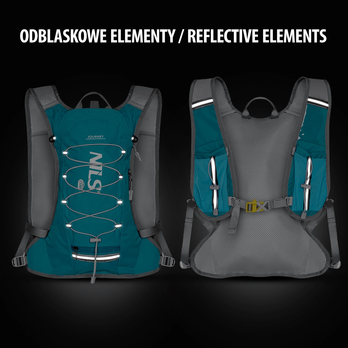 Nils Camp Journey est un sac d’hydratation menthe résistant en nylon et polyester, conçu pour se déplacer confortablement sur le parcours. Grâce au dos en mesh et aux bretelles avec mousse respirante, il assure une excellente aération. La sangle de poitrine avec sifflet stabilise le sac en course comme à vélo.