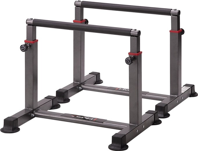 Ajustement rapide à l’aide d’éléments de verrouillage par paliers de 6 cm. Adaptez facilement la hauteur pour les dips, pompes, pompes suédoises et équilibres.