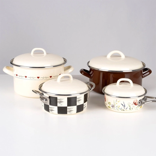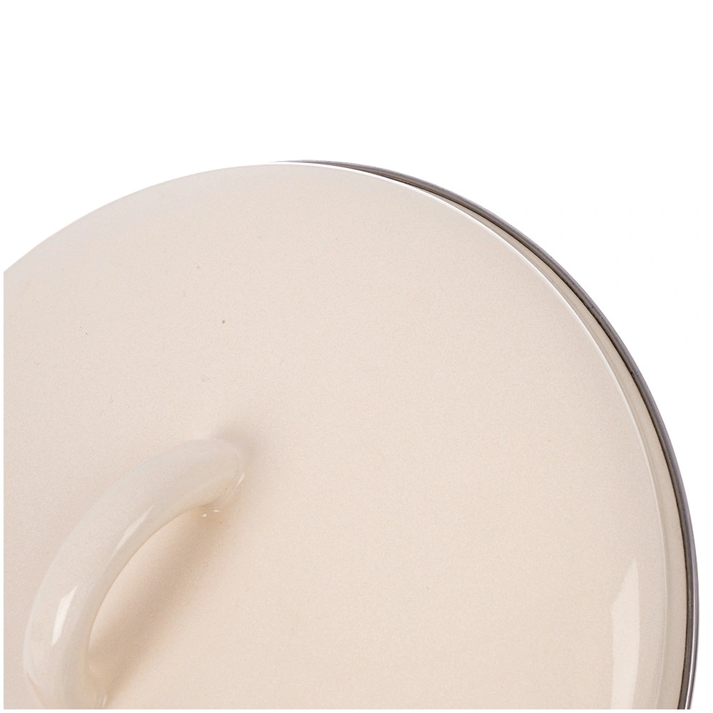 La surface émaillée lisse est hygiénique, facile à nettoyer et sûre même pour les personnes allergiques. Le bord métallique renforce la solidité et la longévité du couvercle.
