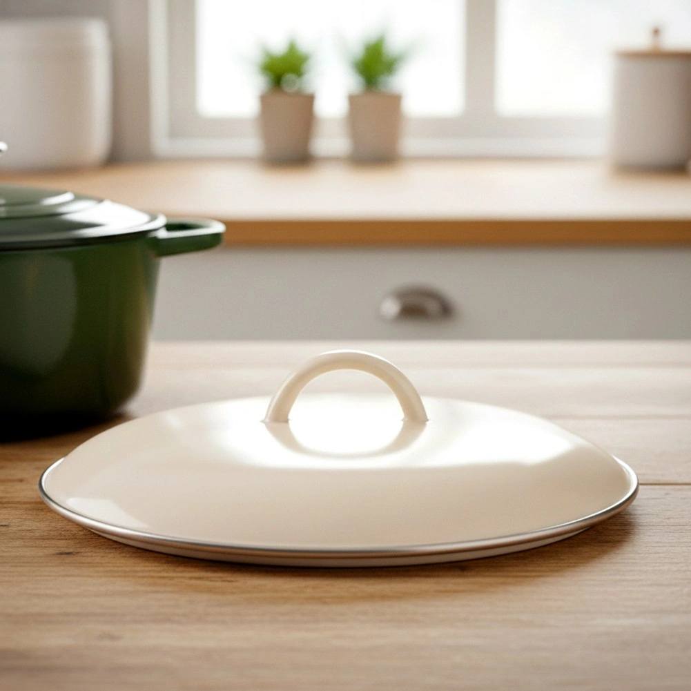 Pratique, ce couvercle en acier émaillé de qualité, au coloris crème élégant, est l’accessoire idéal pour les ustensiles livrés sans couvercle. Grâce à sa conception solide, il conserve efficacement la chaleur et l’humidité, réduit le temps de cuisson et limite les éclaboussures d’eau et de graisse dans la cuisine.