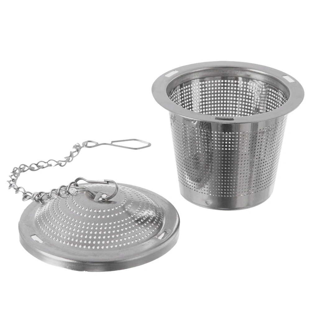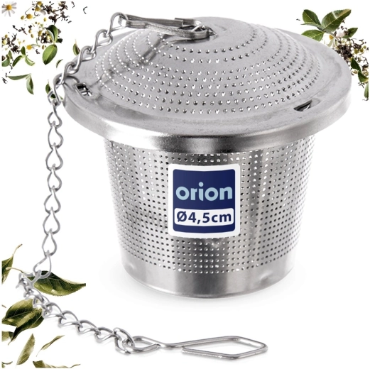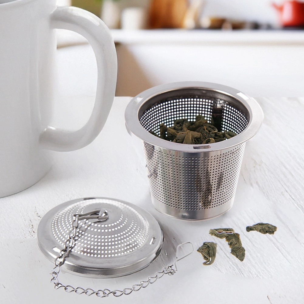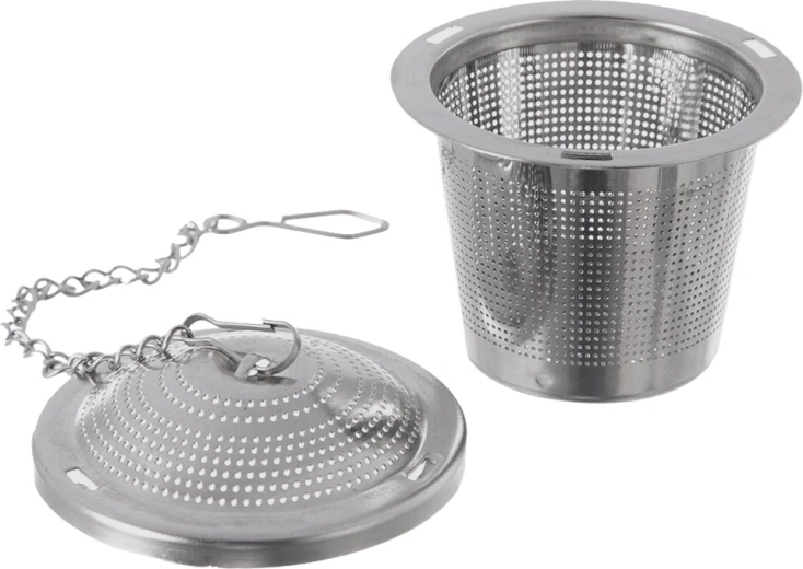 Pratique passoire à thé en acier inoxydable de 4,5 cm de diamètre avec maille fine et chaînette pour suspension sur une tasse ou un mug. Idéale pour les thés en vrac, les infusions de plantes et les fruits séchés, résistante à la corrosion et facile à nettoyer – compatible lave-vaisselle.