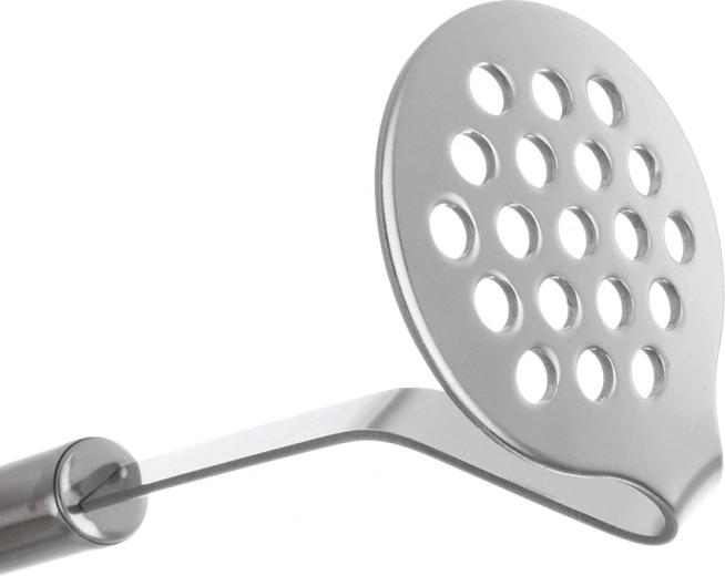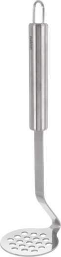 La surface ronde perforée de 6 × 6 cm avec de grands trous écrase efficacement les aliments cuits pour obtenir une texture lisse. La longueur de 24 cm permet de travailler confortablement directement dans la casserole ou le bol. Le œillet de suspension pratique économise de la place et garde l’ustensile toujours à portée de main.