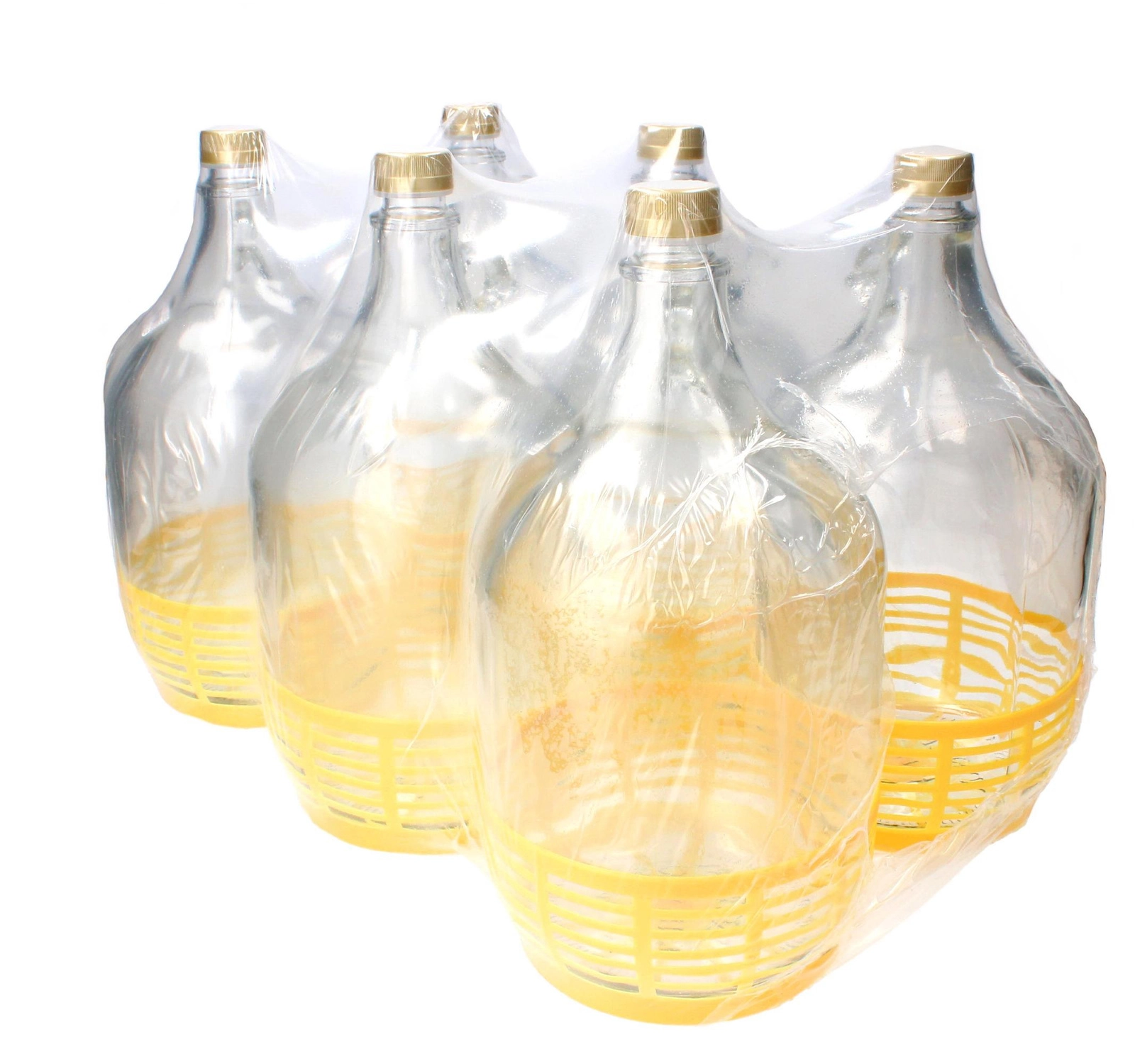Le panier inférieur en plastique augmente la stabilité du récipient, protège le verre des chocs et facilite le transport ainsi que le stockage sur différentes surfaces.