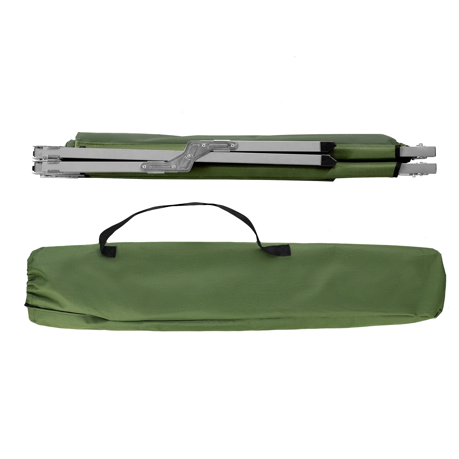 Grâce à son mécanisme de pliage rapide, le lit est prêt à l’emploi en un instant. Plié, il ne mesure que 97 × 10 × 17 cm et pèse 6,2 kg, ce qui le rend facile à transporter et parfait pour la voiture, le camping-car ou le jardin.