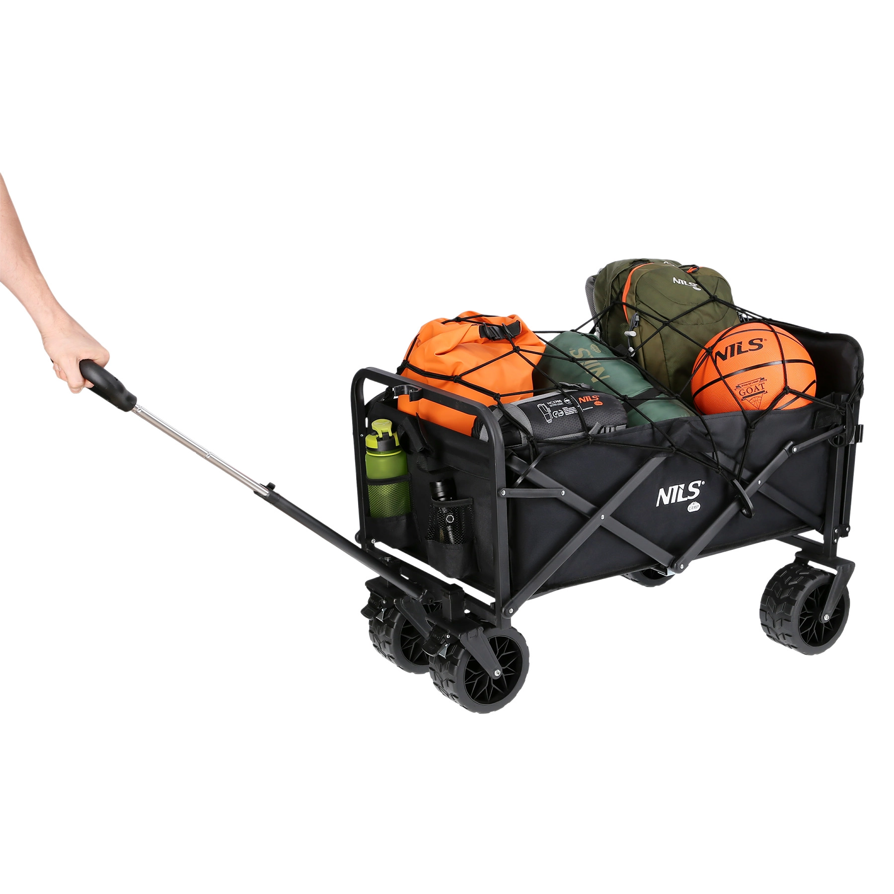 Le chariot pliable NILS Camp NC1608 est l’assistant idéal pour la plage, le camping et les festivals. Il offre un volume de 160 l, une capacité de charge jusqu’à 100 kg, une poignée télescopique pour une manœuvrabilité aisée et de larges roues de 7" pour un déplacement fluide même sur le sable. Le panneau arrière ouvrant, les poches pour boissons et la poche intérieure garantissent une organisation parfaite. Grâce au pliage rapide, au verrouillage et au sac fourni, il se transporte et se range facilement.