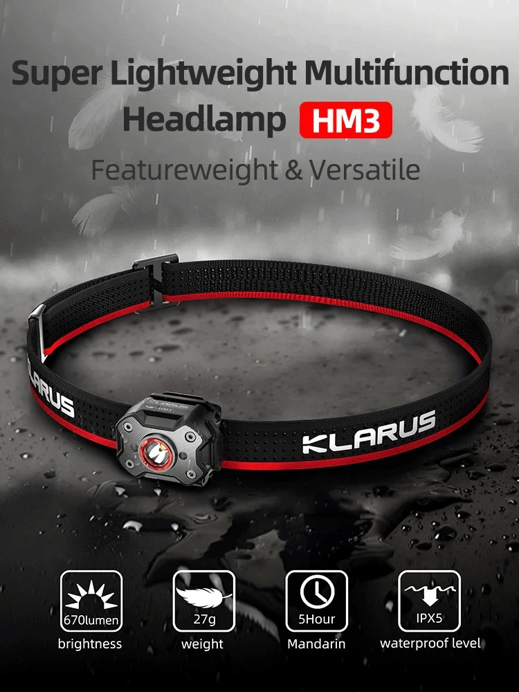 La lampe frontale ultralégère KLARUS HM3 ne pèse que 27 g tout en offrant une puissance lumineuse de 670 lm, une portée jusqu’à 90 m et une étanchéité IPX5. Grâce à la recharge micro‑USB, au pilotage simple par un seul bouton et au clip avec inclinaison 0–180°, elle est idéale pour la course, la randonnée, le camping ou le travail.