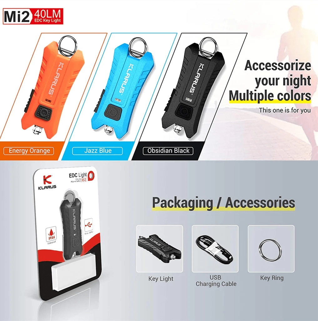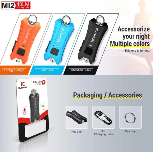 La lampe porte-clés compacte Klarus Mi2 offre un flux lumineux de 40 lm, deux modes d’éclairage et une recharge USB rapide. Elle est fabriquée en plastique ABS résistant, conforme à la protection IPX4, et grâce à son faisceau large de 100°, elle éclaire parfaitement les environs lors des trajets du quotidien.