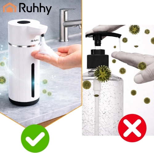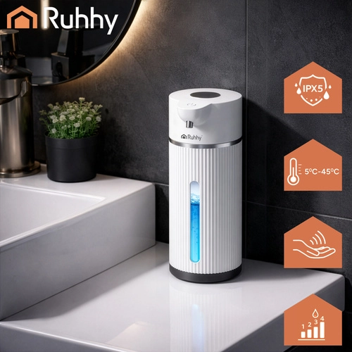 Le distributeur de savon sans contact RUHHY de 420 ml garantit une hygiène maximale grâce à son capteur infrarouge. Il offre 4 niveaux de dosage, une réponse rapide de 0,25 s, un écran LED pour surveiller l’état et une batterie rechargeable de 1200 mAh jusqu’à 5000 doses. Grâce à son indice d’étanchéité IPX5, il est idéal pour la salle de bain et la cuisine, et la charge USB‑C facilite l’utilisation quotidienne.