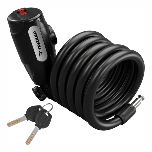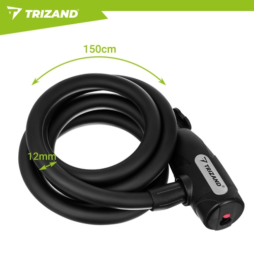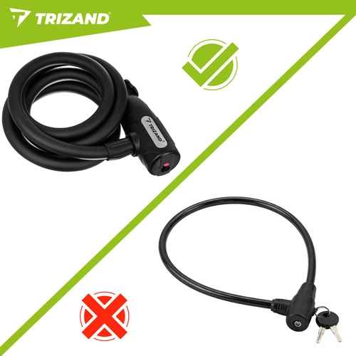 Protégez en toute sécurité votre vélo, trottinette ou poussette avec l’antivol TRIZAND d’une longueur de 150 cm et d’un diamètre de 12 mm. Le câble en acier résistant avec revêtement PVC évite les rayures sur le cadre, la serrure à clé assure un verrouillage rapide et fiable, et la construction spiralée facilite le transport. Inclus: support de cadre et 2 clés.