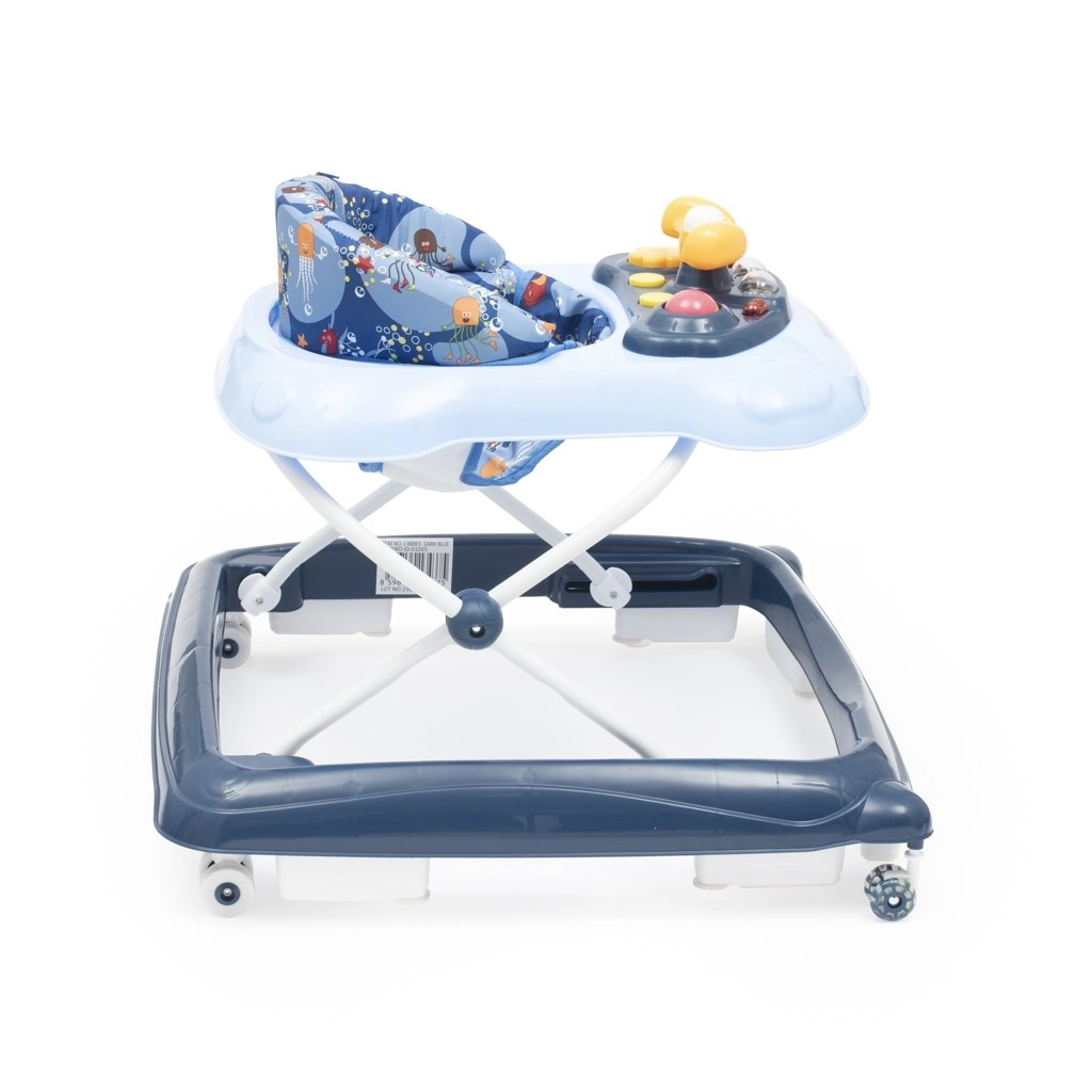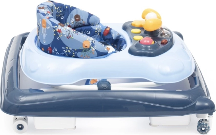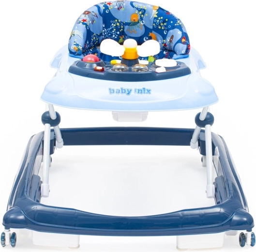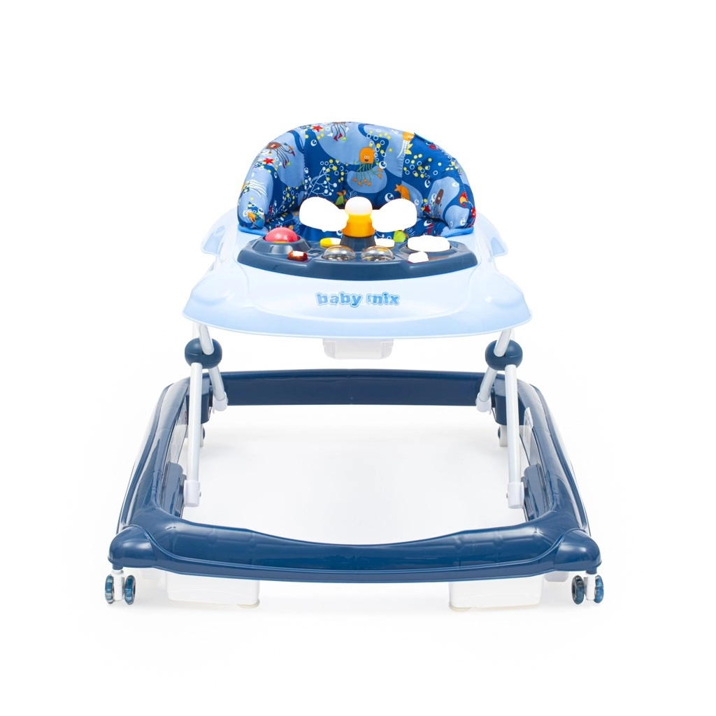 Pratique et ludique, la youpala pour enfants BABY MIX en bleu foncé accompagne les premiers pas et la coordination des mouvements. Elle propose un panneau multimédia avec lumières et sons, un volant rotatif avec klaxon, 3 niveaux de réglage en hauteur et des roulettes en silicone respectueuses du sol. Pour la sécurité, elle dispose d’un système spécial anti-basculement et d’une base large et stable.
