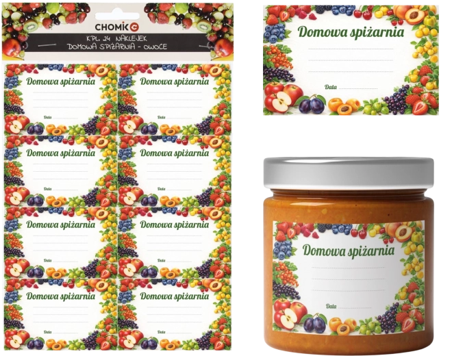 L’ensemble d’autocollants « Domowa Spiżarnia – Owoce » est un excellent choix pour la préparation maison de confitures, marmelades, jus et compotes. Chaque étiquette de 5 cm de diamètre présente un motif fruité attrayant et un espace pratique pour l’inscription, afin d’ajouter facilement le nom de la recette et la date de fabrication.