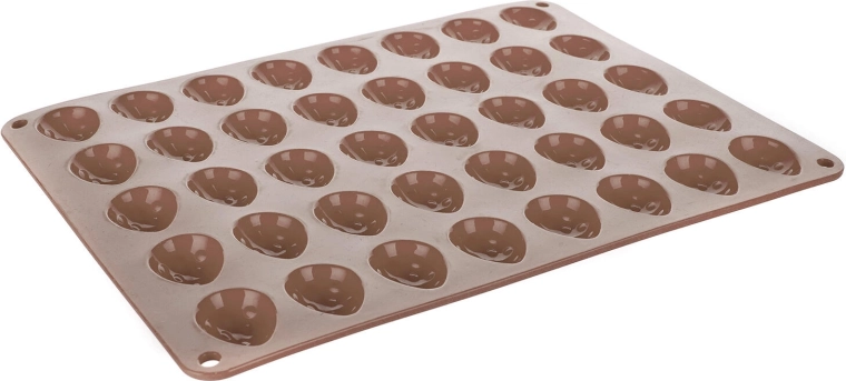 Ce moule en silicone flexible est idéal pour cuire les coques de noix populaires et d’autres petits desserts. Sa surface est naturellement antiadhésive, de sorte que les biscuits ne collent pas et se démoulent facilement sans abîmer leur forme. Le matériau résiste aux hautes températures jusqu’à 230 °C et n’absorbe ni arômes ni odeurs.