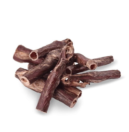Friandise naturelle pour chiens à base de 100 % d’œsophage de bœuf séché, sans conservateurs, colorants ni sucre. Favorise la mastication, nettoie les dents et masse les gencives, aide à prévenir le tartre et contribue à un bon transit digestif.