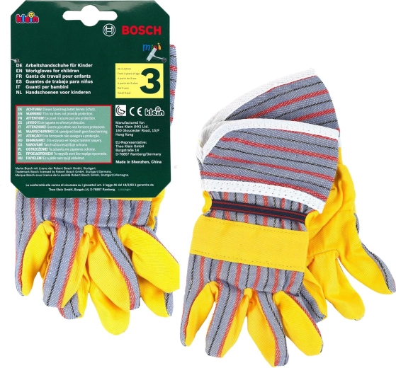 Ils complètent parfaitement les autres ensembles de la série BOSCH mini – des perceuses aux outils de jardin jusqu’aux accessoires de chantier. Les gants sont destinés au jeu et aux déguisements et encouragent les enfants à imiter les adultes lors de petites tâches domestiques et extérieures.