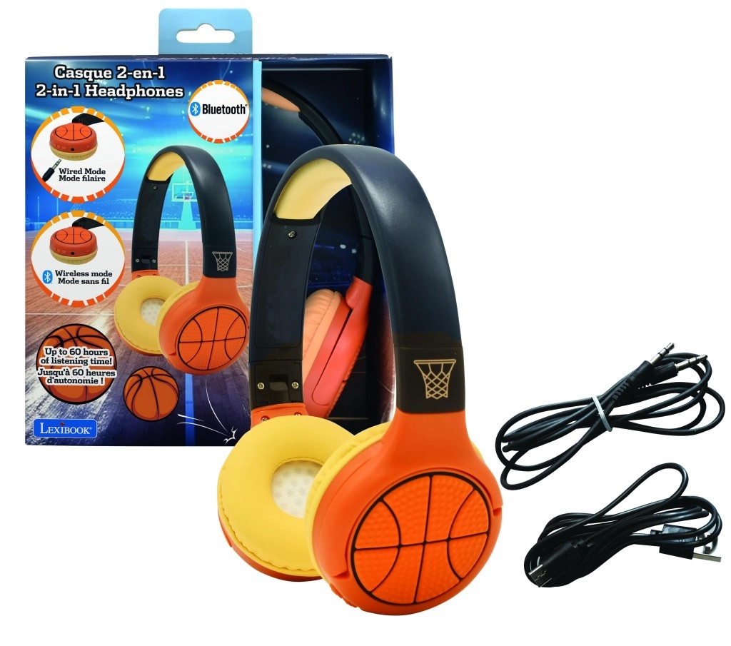 Offrez aux enfants une écoute ludique et sûre. Le casque pour enfants LEXIBOOK au motif basket allie design attrayant et fonctionnalités pratiques pour une utilisation quotidienne. Grâce à la technologie Bluetooth, il fonctionne sans fil et, au besoin, il suffit de brancher le câble fourni avec jack 3,5 mm.