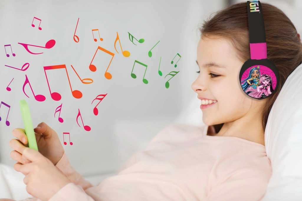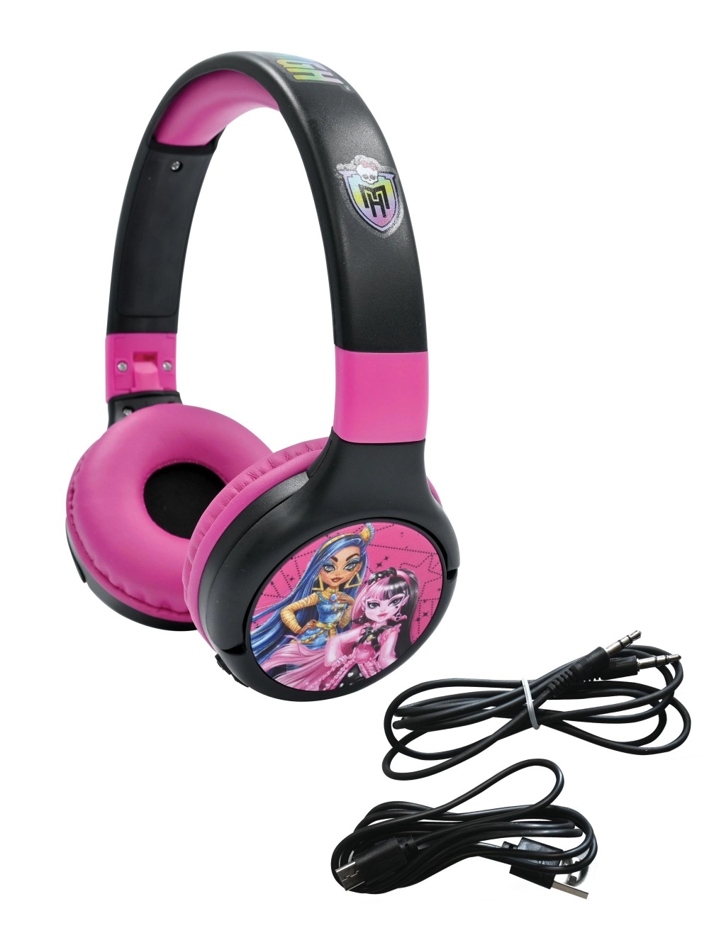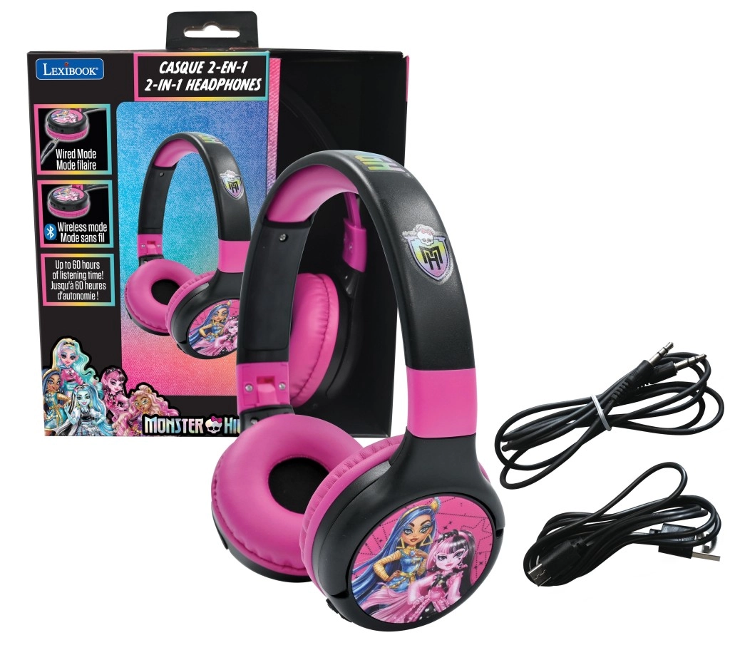 Faites plaisir aux enfants avec le casque Lexibook MONSTER HIGH, qui allie sécurité, confort et divertissement. Grâce à la technologie sans fil Bluetooth, ils peuvent écouter de la musique sans câble, et lorsque c’est nécessaire, il suffit de brancher le câble audio fourni. La conception pliable facilite le transport dans le sac à dos et le design noir et rose voyant avec les héroïnes MONSTER HIGH ajoute une touche de style.